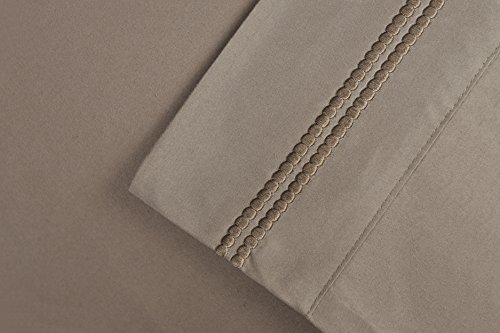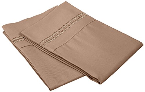 Super Soft Light Weight, 100% Brushed Microfiber, King, Wrinkle Resistant, 2-Piece Pillowcase Set, Taupe with 2-Line Embroidery Detail