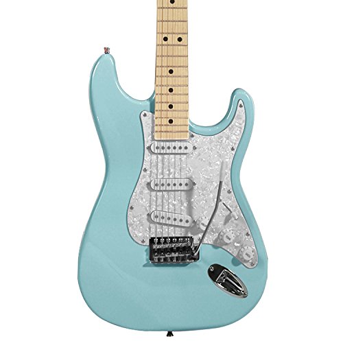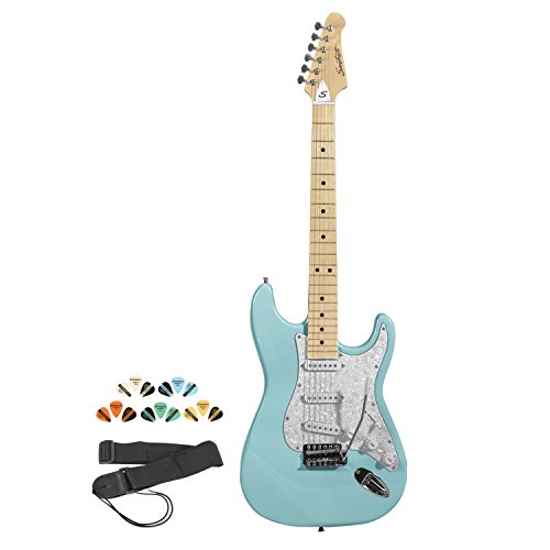 Sawtooth ST-ES-DBLP-KIT-1 Daphne Blue Electric Guitar with Pearl White Pickguard - Includes Strap, Picks and Online Lesson