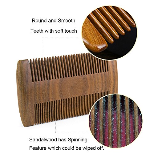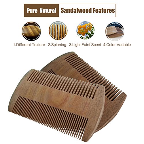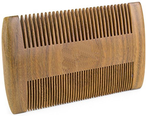 ★ Handmade Comb-Each comb is made from an individual piece of Green Sandalwood Wood and hand-polished. Each comb is unique and no 2 combs look the same. ★ Green Sandalwood-100% natural sandalwood gives aromatic ``woody`` scent. fragrance eternal_ but not pungent.when you smell it_which will make you relax. It could change color in different light and air humidity _sometime are green _ yellow or dark. ★ Fine & Coarse Teeth Comb - Double Different Densities sides andAnti-Static.The coarse teeth perfectly combed tangles and snags. The fine teeth are perfect for shaping mustache_ mens beard and hair. ★ Natural Wooden Comb - Anti-Static and Hypoallergenic.It can helpful to promote the blood circulation and improve metabolism give you a healthy body. ★ Pocket comb - Its dimensions 3.78 x 2.32 x 0.29 in.you can put it in your jean or shirt pockets when you go out.
