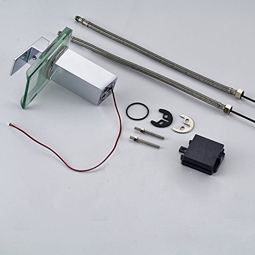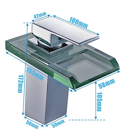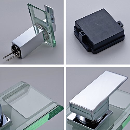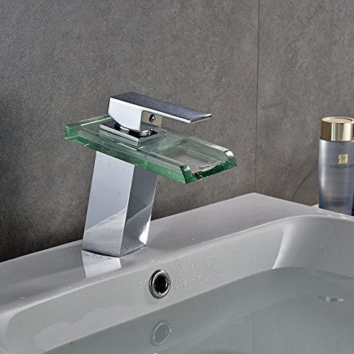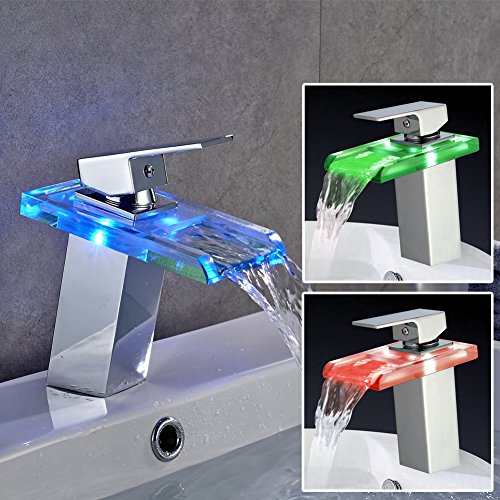 ROVATE Bathroom Sink LED Glass Faucet, RBG 3 Colors Changing Light Waterfall Spout Single Hand Single Hole Mixe Tap/Faucet Deck Mount on Sink, Polished Chrome