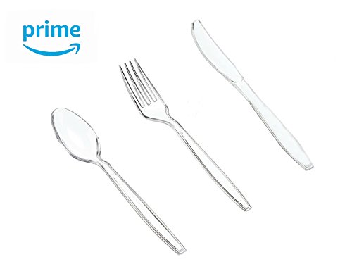 3 Packs of 36 Piece Clear Plastic Heavy Duty Cutlery Disposable Sets