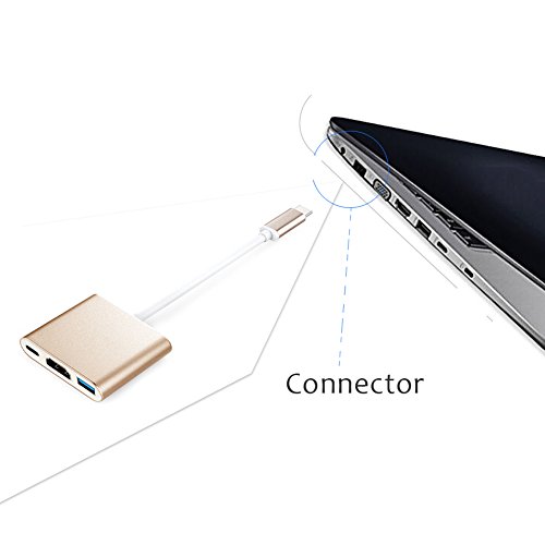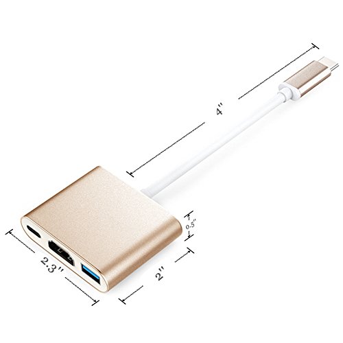 USB 3.1 Type C Adapter to HDMI Converter 4K + USB 3.0 + USB-C Cable Fast Charging Port for New MacBook 12”/OSX/iPad/ChromeBook Pixel/Dell XPS13/Yoga 900/Lumia 950XL/USB-C Device to HDTV/Projector-Gold