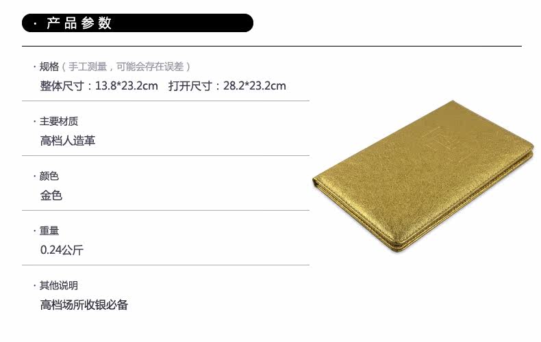 重量:0.24kg/本Model: Gold high-grade cash register clipSize: 150 * 235 (MM)Weight: 0.24kg / the