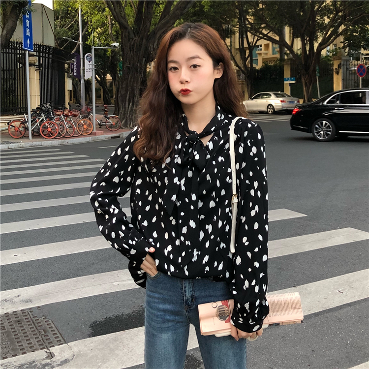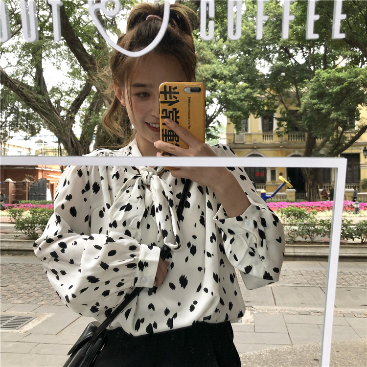 襟元のリボンタイがアクセントで、柔らかく落ち感のある生地でフェミニン&きれいめな雰囲気に♪