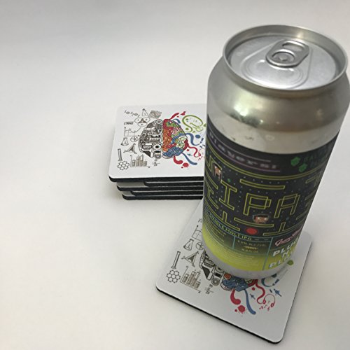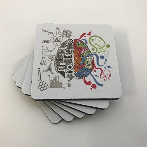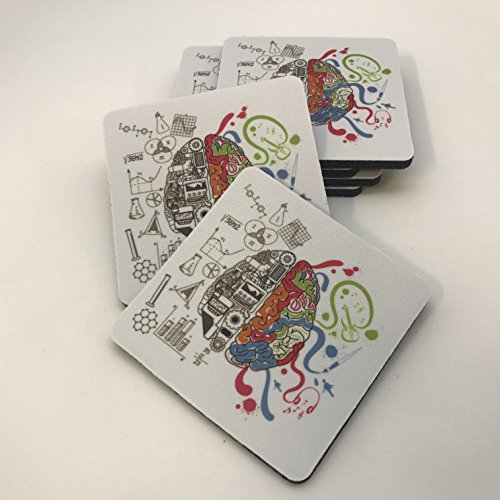 Science Creative Left Right Brain Coaster Set - Beer Drink Beverage Table Coaster Set - Six (6) Quality Soft Absorbent Neoprene Coasters for Home Office or Bar