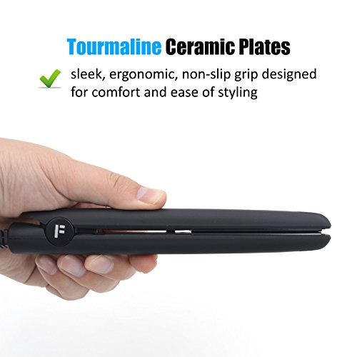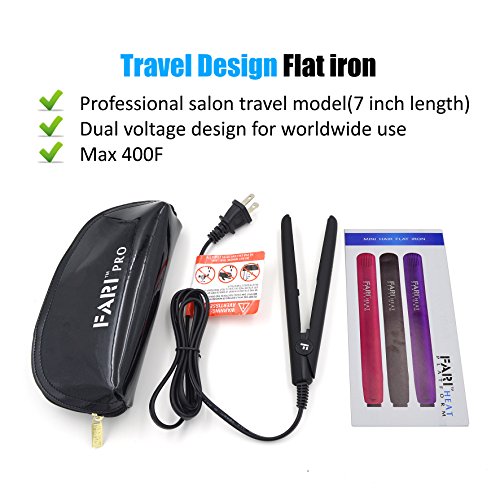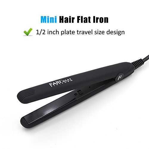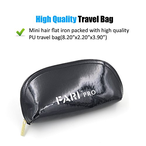 FARI Travel Mini Hair Flat Iron 1/2 Inch Ceramic Tourmaline Hair Straightener with Travel Bag Dual Voltage Travel Iron For Worldwide Use Temp 400F (Black)