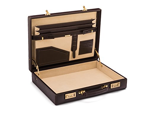Studio : SageBrown Publisher : SageBrown Binding : Apparel Product Description A SageBrown briefcase is more than a well crafted article to carry your documents. It becomes in time an irreplaceable part of your life. Slightly bigger than the Kensington this classic sturdy lid over briefcase is beautifully proportioned and is constructed in a fine grained cowhide leather hand-stitched around the edges. The upgraded solid brass handle plate made in England means this timeless piece will last for years.The briefcase closes with two sturdy locks and internally the case is lined in a luxurious contrasting coloured suede. Inside there are three expandable pockets space for five credit or business cards pen loops and 2 flat pockets. The case stands on 4 metal feet at the base. This style is in great demand and is becoming very fashionable. You can't find this in many shops so be one of the trend setters and arrive to work in style! 0