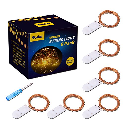 6 Pack LED String Lights, Poshei Battery Operated String Lights 10ft/3M 30 LEDs Waterproof Flexible Decorative Lights for Party Christmas Wedding Bedroom Home Table Decorations ( Warm White )