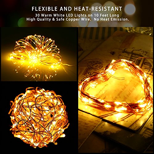 FLEXIBLE - 6 pack 30 super bright battery powered warm white color mini micro LED lights on a 10 feet ultra thin copper wire can be easily bended and flexibly shaped into any shape that you desire.