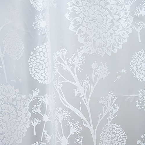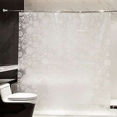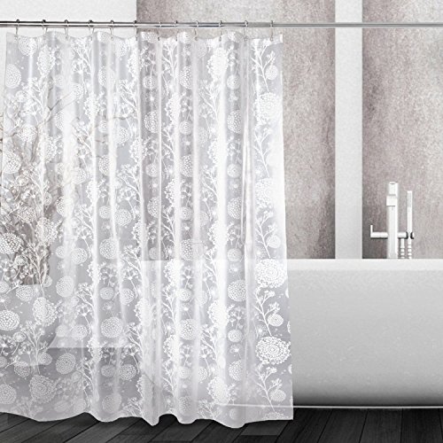 Mooxury Waterproof Shower Curtain Liner, White Flower EVA Shower Curtains with Hooks for Bathroom, Mildew Resistant, Antibacterial, Non Toxic, No Odor, 72x72 Inch