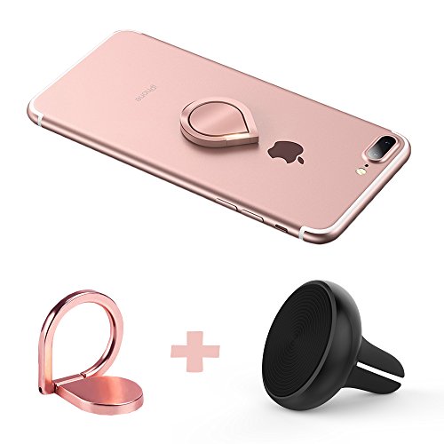 Phone Magnetic Car Mount and Finger Ring Holder, ANARONA 360° Rotation Zinc Alloy Grip Finger Ring Stand for iPhone 8, 7, plus, 6, 6S, 5s, 5c, Galaxy S7, S7 Edge, S6, S8, Tablets and GPS (Rose Gold)