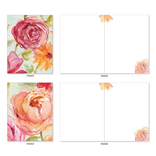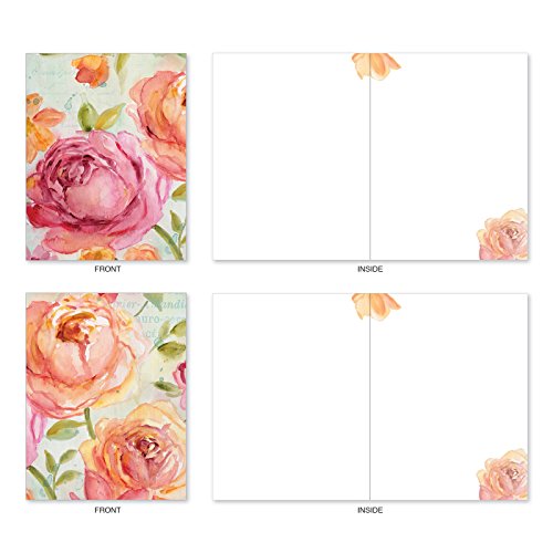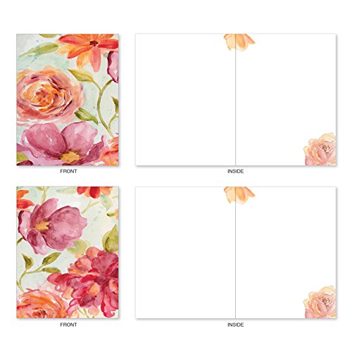 The Best Card Company 10 Assorted Blank All-Occasion Note Cards Feature Rich Florals in Warm Watercolor with White Envelopes (M1715BN)