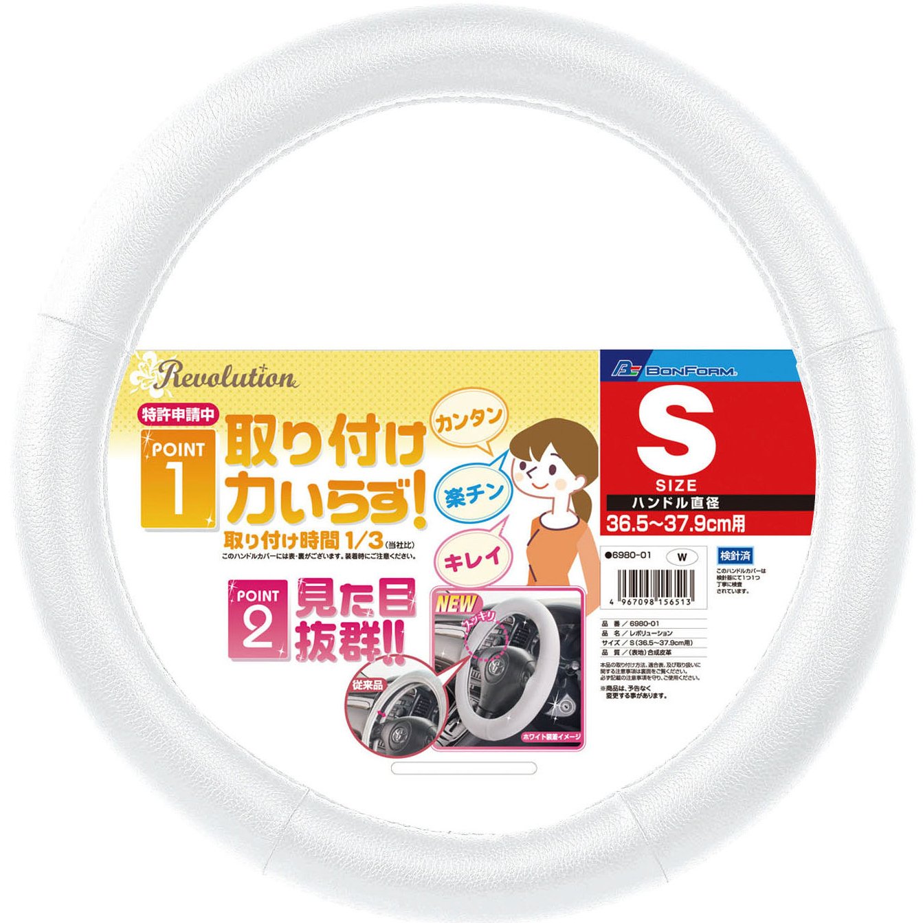 BONFORM (Bonn form) handle cover Revolution S size (36.5 ~ 37.9cm) White 6980-01W