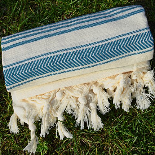 Natural & Bermuda Blue Turkish Towel Peshtemal - 100% Natural Dyed Cotton - for Beach Spa Bath Swimming Pool Hammam Sauna Yoga Pilates Fitness Gym Picnic Blanket (Dandelion Textile)