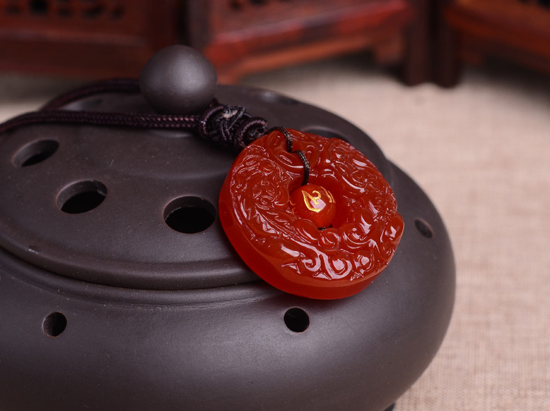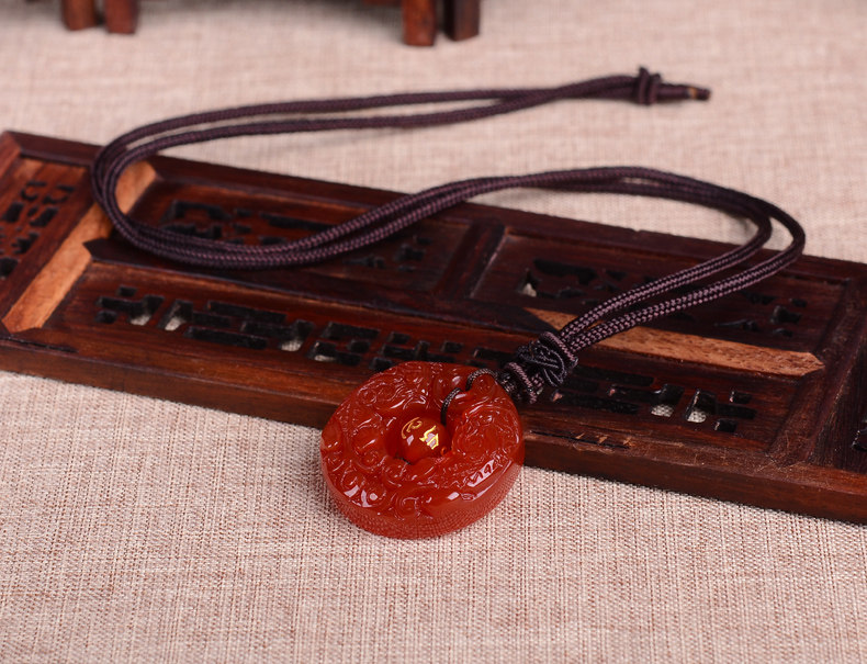 开光 红玛瑙双雄得财貔貅吊坠吉祥物 金禄得宝护身符吉祥物项坠