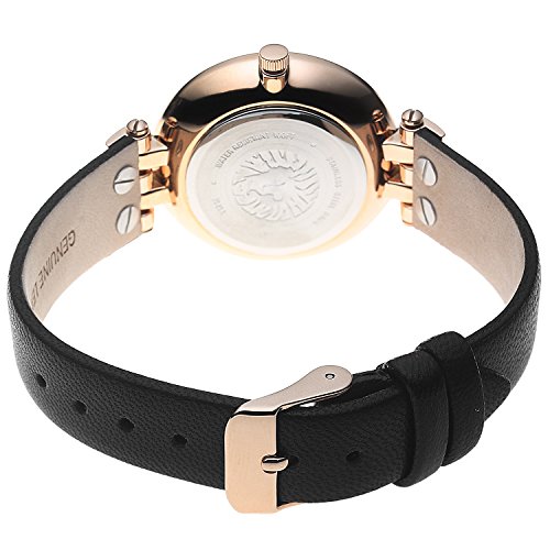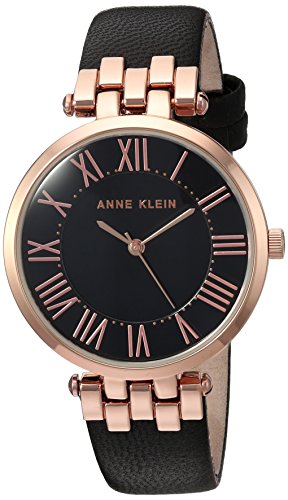 Anne Klein Women's Rose Gold-Tone and Black Leather Strap Watch