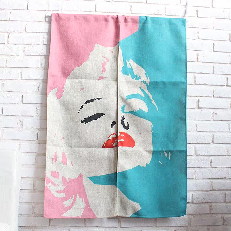 创意布艺门帘 玛丽莲梦露隔断帘卧室挂帘美式复古棉麻半门帘布帘