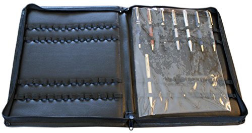 -. Feature : Zippered Leatherette Pen Case Display / Holds 60 Pen Collections, Fountain Pens, Speciality Pens / Has a plastic middle divider / Great storage for your collection and easy to carry / (PENS IN THE PICTURE ARE NOT INCLUDED)