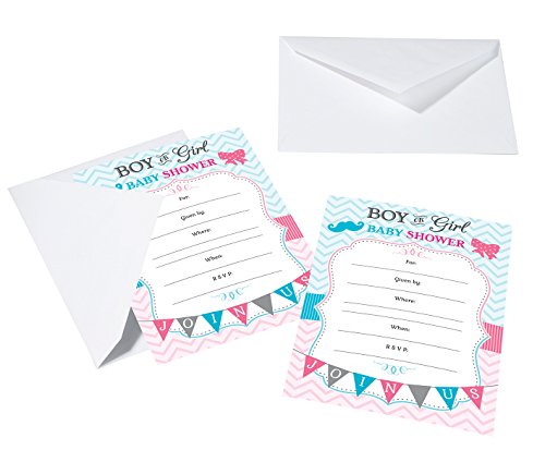 Lillian Rose 8-Piece Baby Gender Reveal Invitations, Pink/Blue/White, 5" x 7"