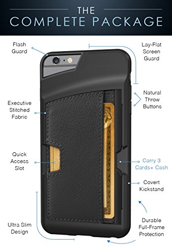 The Q Card Case for iPhone 6 Plus/6s Plus (5.5") by CM4 is an ultra slim iPhone 6 wallet case that fits 3 credit cards plus cash in a premium, protective soft-touch and fabric case. An exclusive patented soft-touch rubber and premium fabric construction blends to form a streamlined pocket to carry up to just what you need while on-the-go. Meanwhile, the Lay-Flat Screen Guard design and Natural Throw buttons provide ultimate screen protection and enhance the organic connection with your iPhone. The Q Card Case marries the essentials of a wallet to the form factor of your iPhone.Feature