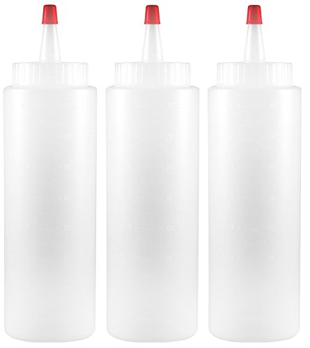 Easy Squeeze Condiment Bottles, 8 ounce with Red Cap, Restaurant Dispenser for Ketchup & Mustard, Sauce, Dressing, Oil, Syrup (3)