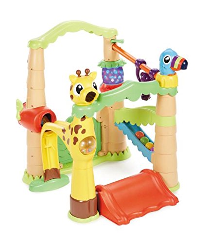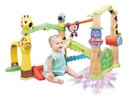 Multi-functional animal-themed play center helps infants develop fine motor skills with fun lights and sounds Baby can explore
