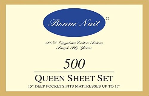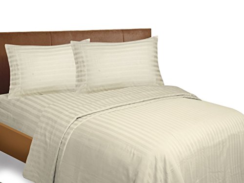 Bonne Nuit 500 Thread Count Hotel Collection Luxury Bedding Bed Sheets - Bestseller- Super Sale 100% Cotton Sateen - Wrinkle Resistant Sheet Set-Queen Size Stripe Ivory Color
