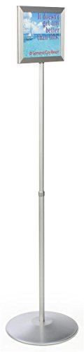Displays2go Pedestal Sign Stand with Telescoping Height-Adjustable Design, Double-Sided Frame with Top-Loading Setup for 11 x 8.5 Prints - Silver/Aluminum (TLSCH)
