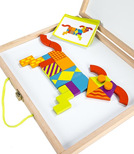 -. Feature : Let the little ones' imagination go wild building their colorful creations on this magnetic board / The sturdy wood carrying case features durable hinges and rope handles that are perfect for little hands to grasp at home or on the go / The magnetic board surface also doubles as a dry-erase board, so kids can decorate a backdrop for their creations / Construct animals, faces, vehicles, sports and more / Boost fine motor and visual thinking skills with these brightly-colored magnetic blocks and 50 full-color design challenges / Let the little ones' imagination go wild building their colorful creations on this magnetic board. / The sturdy wood carrying case features durable hinges and rope handles that are perfect for little hands to grasp at home or on the go. / The magnetic board surface also doubles as a dry-erase board, so kids can decorate a backdrop for their creations. / Construct animals, faces, vehicles, sports and more. / Boost fine motor and visual thinking skills with these brightly-colored magnetic blocks and 50 full-color design challenges.