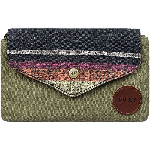 Roxy is a lifestyle brand, offering products for every aspect of the active girl's life. From handbag to Henley, wetsuit to tide watch, the key ingredient of our products is that inimitable Roxy spirit. "Daring, confident, naturally beautiful, fun, alive: Roxy". 100% Cotton. Printed canvas wallet with faux leather flap and leather, logo patch. Size : 4.5"h x 7.5"w / 11.4h x 19w cm.