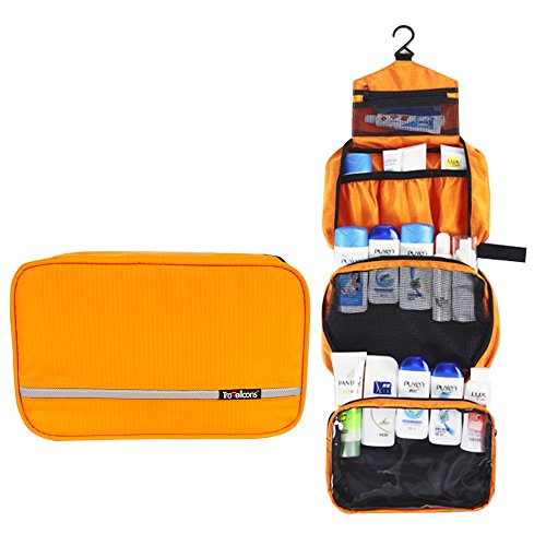 -. Feature : 1.Large Capacity and Multifunctional:Toiletry bag has 6 compartments to store your cosmetics, shaver, toothbrush , toothpaste, shampoo, shower gel, soap; Cosmetic bag meet all kinds of your demands / 2.Easy to Carry&Use:No need to unpack items or rummage around. hanging toiletry bag lets you hang the bag on the bathroom for fast access to your toiletries.The small volume traveling toiletry bag is easy to carry whether on a business trip , travel or camping . / 3.Waterproof and Durable Material: This fordable toiletry bag Made from high quality Oxford fabric,which is waterproof and lightweight, and durable. One of the inner pockets is made of transparent PVC for more waterproofing and protection to your toiletries and cosmetics. / 4.Stainless Steel Zippers:The hanging toiletry bag Made of high quality stainless steel ,the zippers is very durable,no need to worry about the zippers being broken after a few times of using. Hanging cosmetic bag will stand up to years of use. / 5.Anti-bacterial Inner Lining:That protects your personal items from the penetration of moisture or bacterial, bring you a clean and comfortable trip.Dimensions: 9.4 inch x 27 inch x 3 inch (Open);9.5 inch x 5.9 inch x 3.9 inch (Folded).Materials:High Quality Oxford Fabric