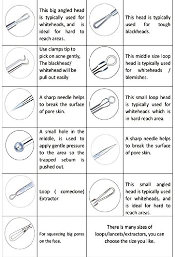 -. Feature : Made with surgical grade anti-microbial blemish come done extractor removal tool kit.Everyboy need to knows there are NO INTRODUCTIONS on the package / This Kit is the Same High Quality as other expensive kit which packed in steel case (about more than $9.99), we selected 4 most functional needles and changed to pack in a mini case to save product cost, sell it at a LOWEST P.R.Ice / The professional needle won't cause sensitivity issues and works on all types of skin.Design for precision control and comfort use / Reticular pattern make you better control the pressure during use, ensuring every step can be done with exceptional control and precision to avoid damage to the skin / LIFETIME GUARANTEE- We provide 100% Money-Back Lifetime Guarantee so you can order with confidence