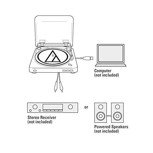 Built-in switchable phono pre-amplifier with RCA output cables to connect to audio systems and powered speakers