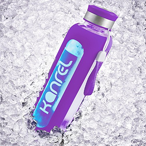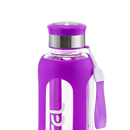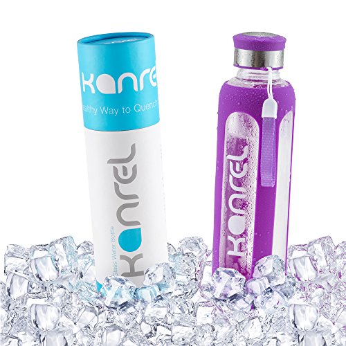 Kanrel Glass Water Bottle BPA Free & Eco Friendly with Purple Silicone Sleeve (20 Ounce) Reusable, Leak Proof, Dishwasher Safe, Easy Clean