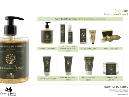 -. Binding : Health and Beauty -. Brand : Panier des Sens -. EAN : 3760062023061 -. Feature : Nourishing body care / Made with Organic Olive Oil from Provence / Paraben Free / Phenoxyethanol free / Made in France -. IsAdultProduct : 0 -. Label : Panier des Sens -. Manufacturer : Panier des Sens -. MPN : 023 06 -. PackageQuantity : 1 -. PartNumber : 023 06 -. ProductGroup : Beauty -. ProductTypeName : HEALTH_PERSONAL_CARE -. Publisher : Panier des Sens -. Size : 16.9 fluid ounces (500 ml) -. Studio : Panier des Sens -. Title : Panier Des Sens, Olive Liquid Marseille Soap with Organic Olive Oil, from Provence, 500ml