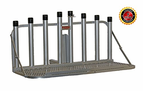 -. Title : Fishing Rod Holder Rack with Fold Down Platform (Mill Finish)