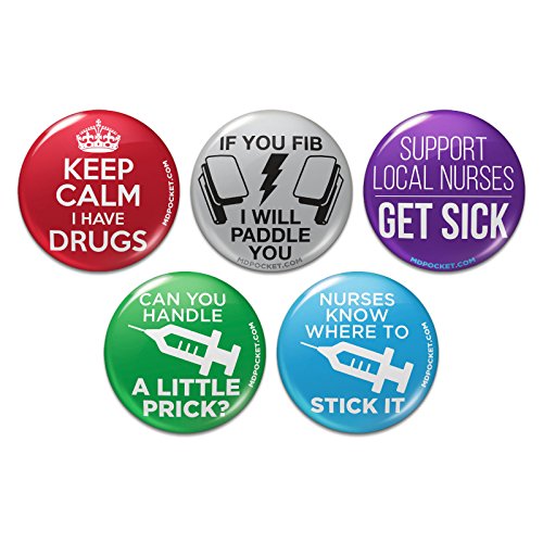 Binding : Apparel Product Description Want some flair to pin on your white coat, lanyard, hat, backpack, or jacket? Our custom-made buttons are small enough to place anywhere and have some fun day-to-day. This is a pack of 5 buttons for extra savings and more fun! Each button measures 1.25 inches (32 mm) across, and features a pin backing that fastens to any fabric. 0