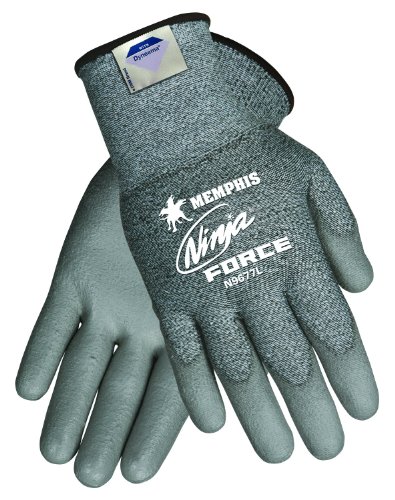 MCR Safety N9677L Ninja Force Polyurethane/Dyneema 13-Gauge Gloves, Gray, Large, 1-Pair
