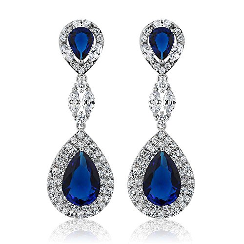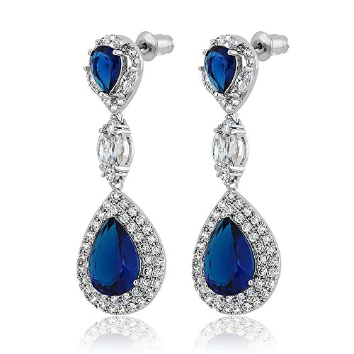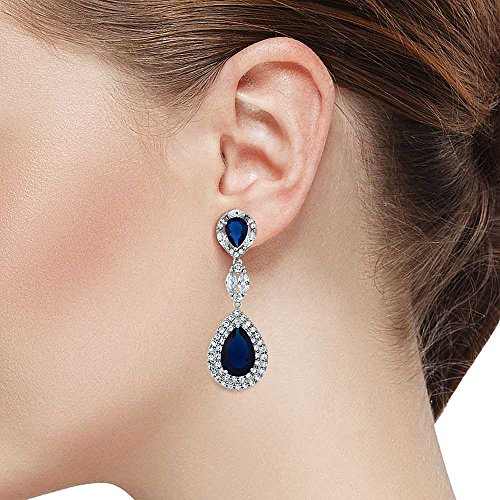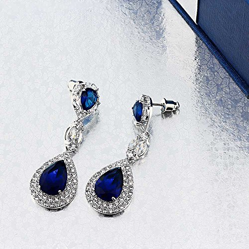 -. Binding : Jewelry -. Brand : Gem Stone King -. Department : womens -. Feature : CLASSIC- And contemporary these dangling earrings will light up the room and your outfit. Featuring a tear drop design and white CZ these earrings will show off your style and sophistication effortlessly. / PERFECT- For all occasions weddings, anniversaries, dinners and birthdays these earrings are the perfect gift and are the perfect addition to any fine jewelry collection. / TOTAL SATISFACTION GUARANTEE - When you order today, you're protected. The item comes with a No questions asked money back guarantee combined with world class customer service. Free Return and Refund and One Month Warranty and Free Second Day Delivery for Amazon P.R.Ime! / Gemstones may have been treated to improve their appearance or durability and may require special care. -. Model : CC-EG0389TKA -. NumberOfItems : 1 -. PackageQuantity : 1 -. ProductGroup : Jewelry -. ProductTypeName : FASHIONEARRING -. Title : Pear Shape Blue Simulated Sapphire and Zirconia Dangle Chandelier Earrings 2"