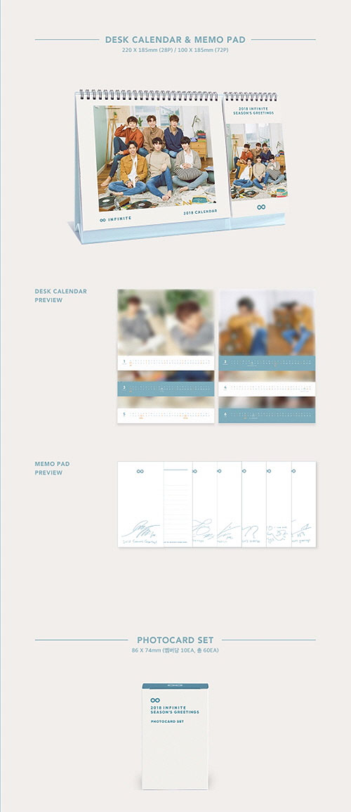 Korean Star Collectibles INFINITE 2018 Season Greeting (Desktop Calendar & Notepad + Photo Card Set + Binder Book + Making DVD)