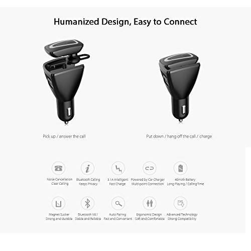 This 2-in-1 Bluetooth car charger with headset, has distinctive features of superior charging quality, hans-free call and playing music, it will automatically answer and hang off the calls while you taking the headset away from the car charger or putting it into, provides convenient and worry-free driving experience for you.