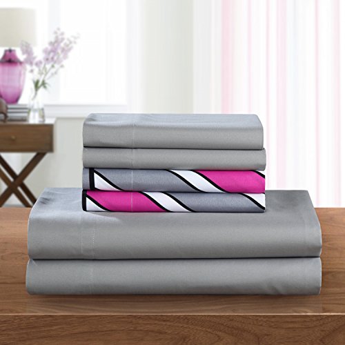 Chic Home SS4990-AN 4 Piece Solid Super Soft Brushed Microfiber Sheet Set with 1 Bonus Pillow Case, Twin, Grey