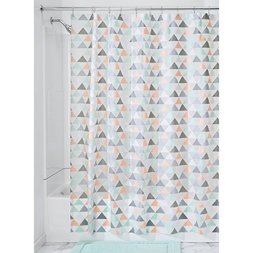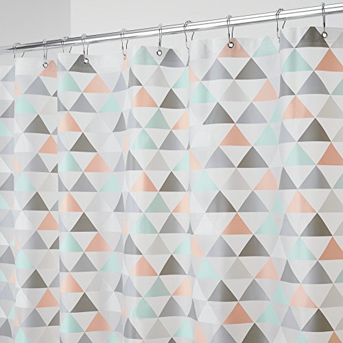 mDesign Triangles Mold and Mildew-Resistant PEVA 5 Gauge Shower Curtain - Triangles, 72 x 72 inches, Coral/Mint …