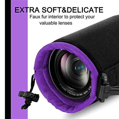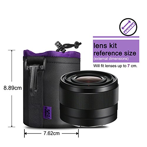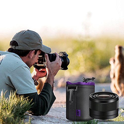 Compatibility: Lens pouch compatible with lenses from most popular cameras, including Canon, Panasonic, Pentax, Olympus, Nikon, Fuji, Sony, and all other popular brands