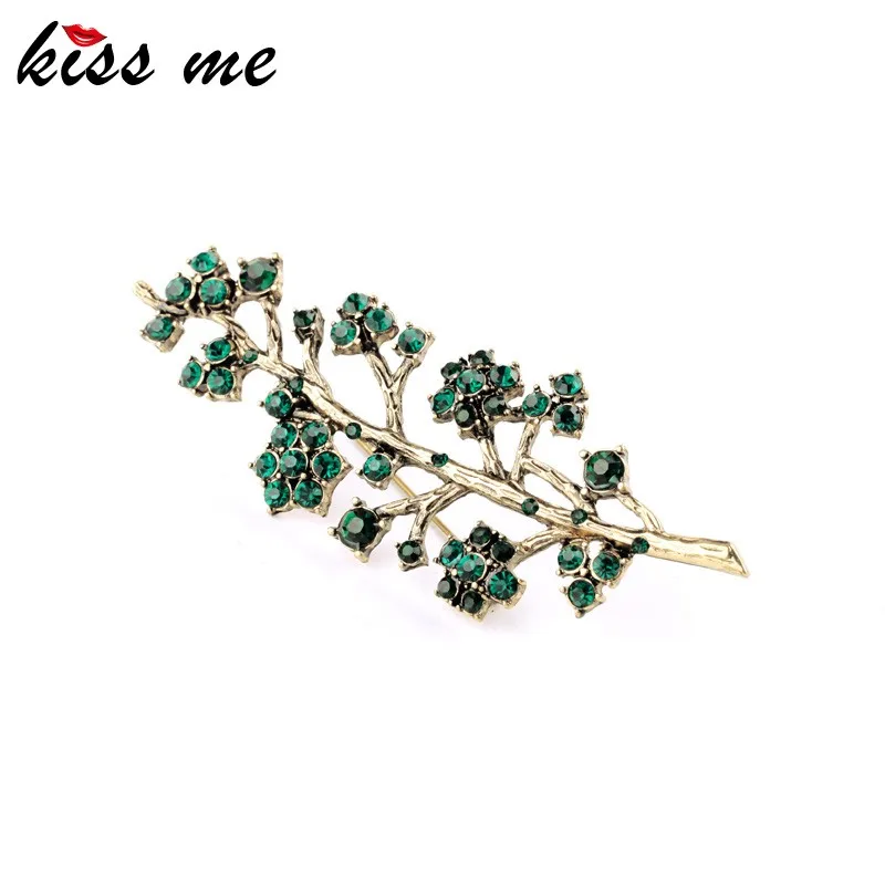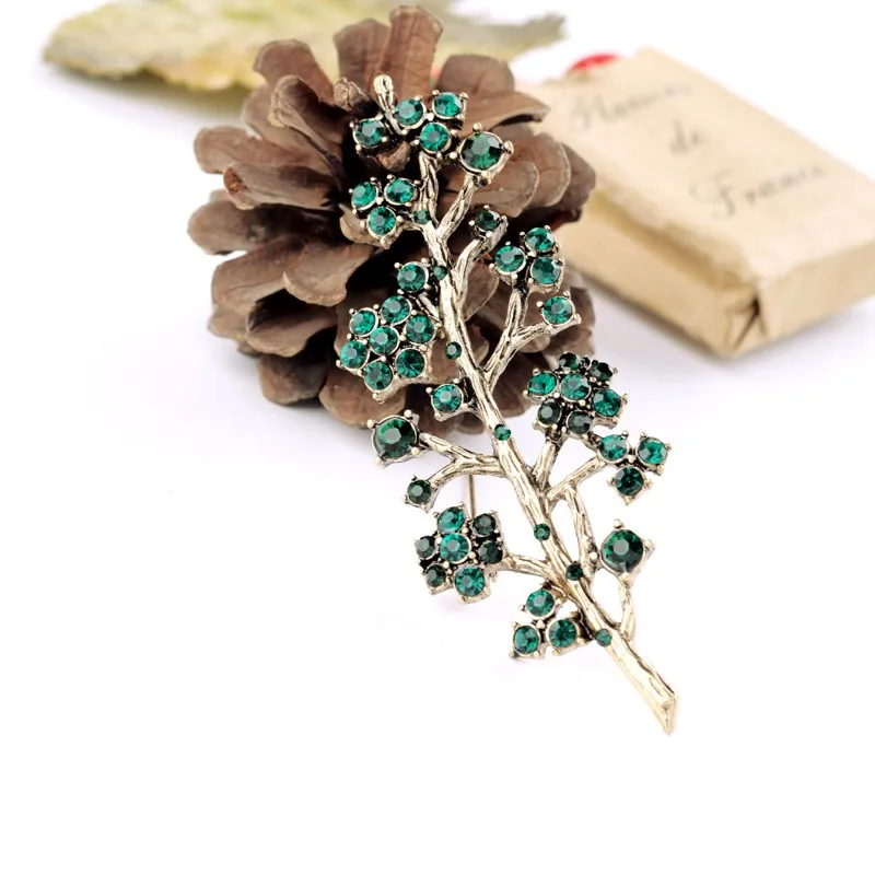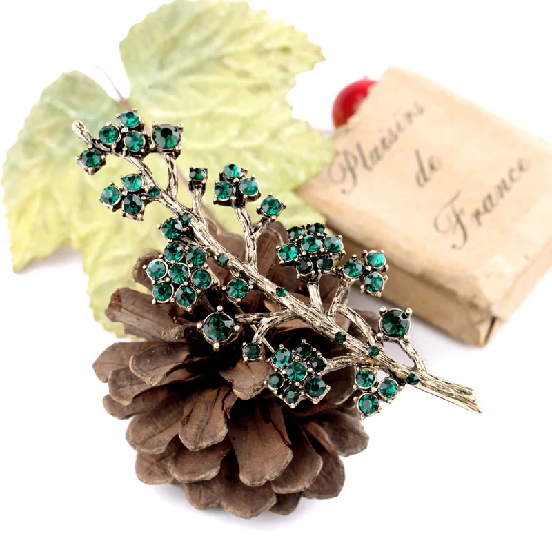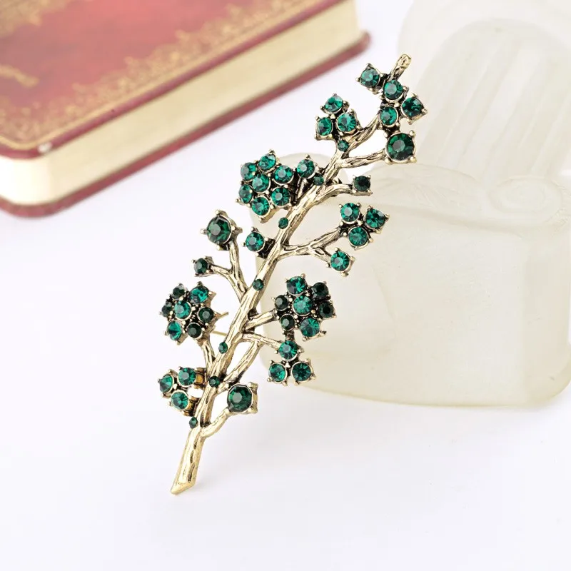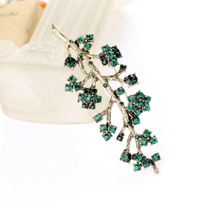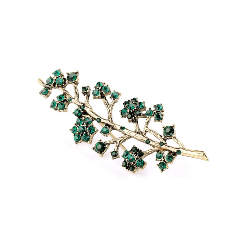 Production name ::Retro Alloy Set Green Crystal Branch Brooches for Women
