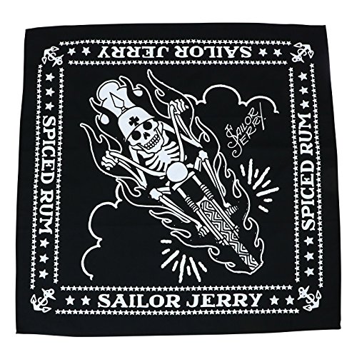 Product DescriptionAuthentic Sailor Jerry Cotton Bandana Screen Printed with Biker Skeleton Graphic.0