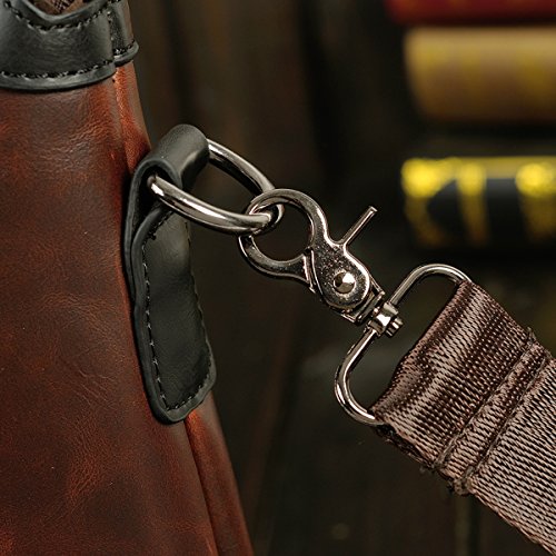 -. Feature : Dimensions: 38*7*29 cm /14.96*2.76*11.42 inch / Structure: 1* zipper main bag ,1*Computer Mezzanine, 1* zipper bag, 2* cell phone document bag and 1* zipper camera bag. / Materials: canvas+ Cow leather / Large capacity providing enough room for cellphone, wallet and other daily carrings. / Style: shoulder bag/ messenger bag/Handbag