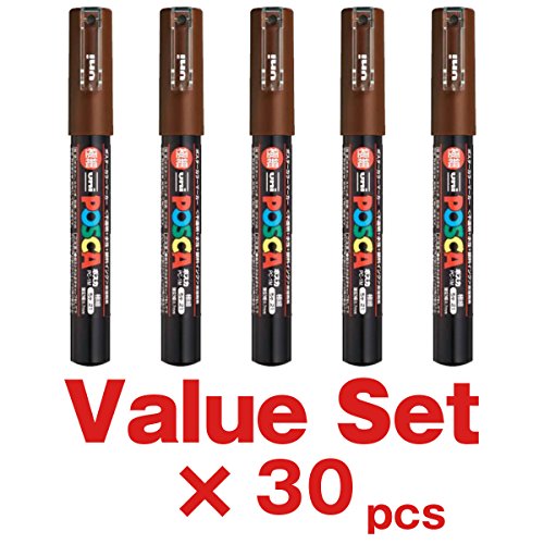-. Feature : Uni Posca Paint Marker Pen PC-1M / Extra Fine Point / Brown Ink / Value Set of 30 / With the Original Ecology Sticky Notes