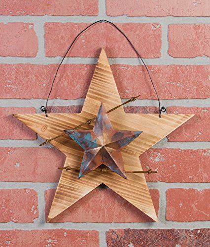 Ohio Wholesale 11" Western Star Wall Decor with Barbed Wire and Faux Copper Patina Star