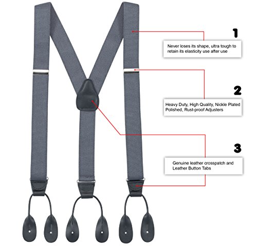 | Hold'Em Men’s Elastic Y-back Adjustable Button End Suspenders - Sizes 46" 54" (2 Colors) |